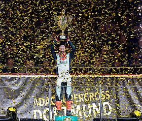Damit ist die Entscheidung im ADAC SX Cup gefallen, doch in der lokalen Veranstaltungswertung bleibt es spannend: Im Rennen um den Titel „Prinz von Dortmund“ führt Fonvieille nach zwei von drei Tagen mit der Maximalausbeute von 50 Punkten, gefolgt von Lamarque mit 42 Zählern. Die endgültige Krönung erfolgt jedoch erst im großen Finale am Sonntag.