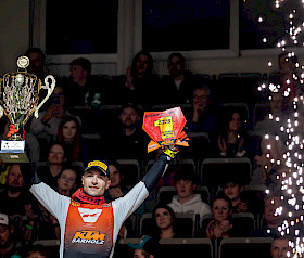 Calvin Fonvieille (KTM Sarholz Racing Team) hat in der Westfalenhalle seine Extraklasse unter Beweis gestellt und sich am Samstagabend den Gesamtsieg im ADAC SX Cup gesichert. Der Franzose, der bereits seit acht Jahren in Dortmund an den Start geht, kontrollierte das Finale über 15 Runden souverän von der Spitze aus und feierte damit nach 2025 seinen zweiten Titel in der prestigeträchtigen Winterserie.