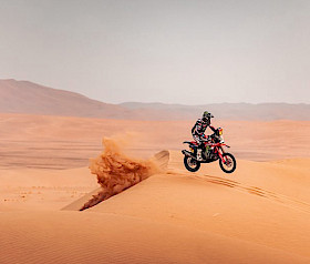 Skyler Howes setzte seine konstante Leistung bei der Dakar mit einem soliden vierten Platz fort und sicherte sich zudem Bonuszeit. Das dünenreiche Terrain kam sowohl dem Amerikaner als auch seiner Honda CRF450 RALLY entgegen und er absolvierte die zweitägige Marathonetappe problemlos, wodurch er seinen fünften Gesamtrang verteidigte.