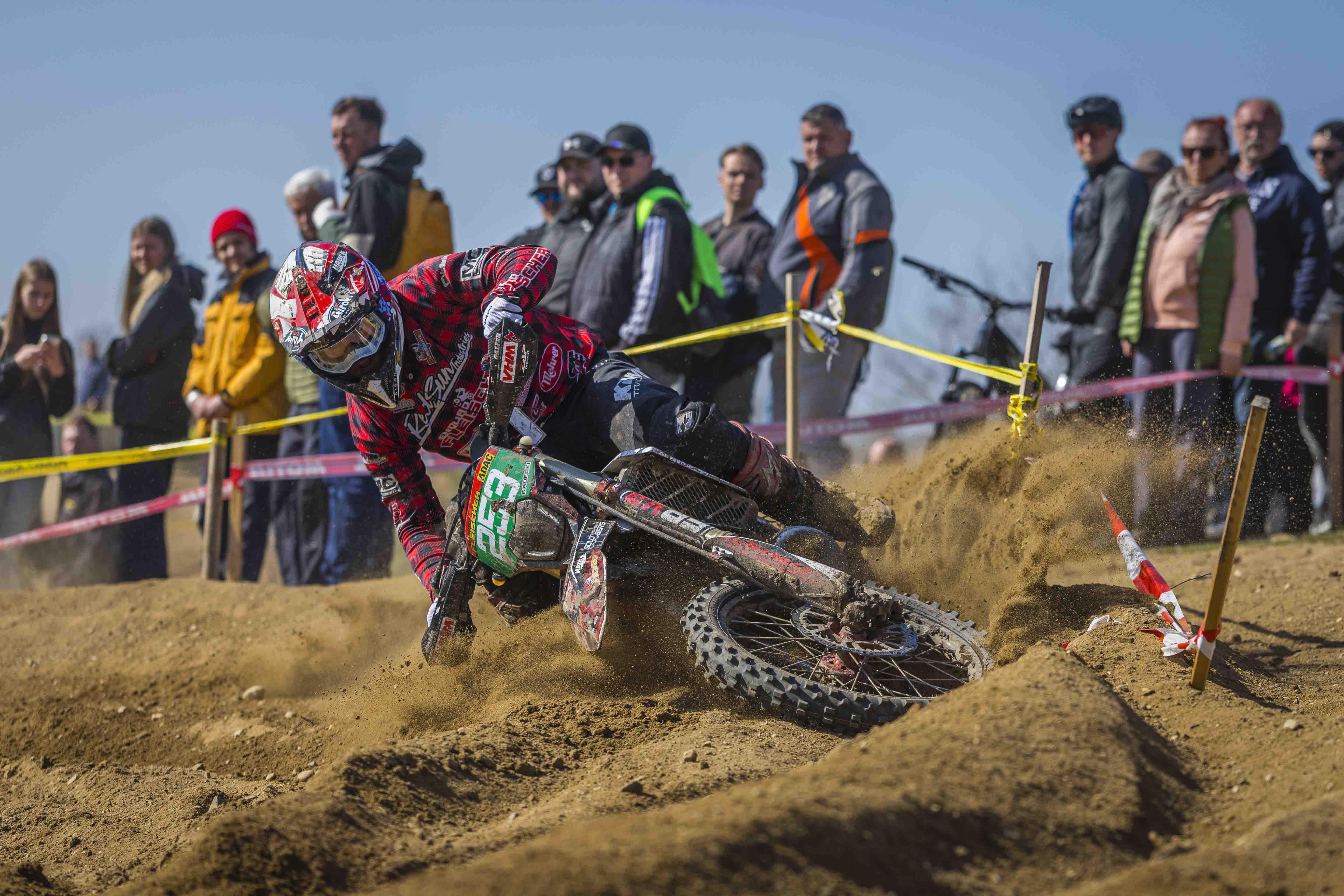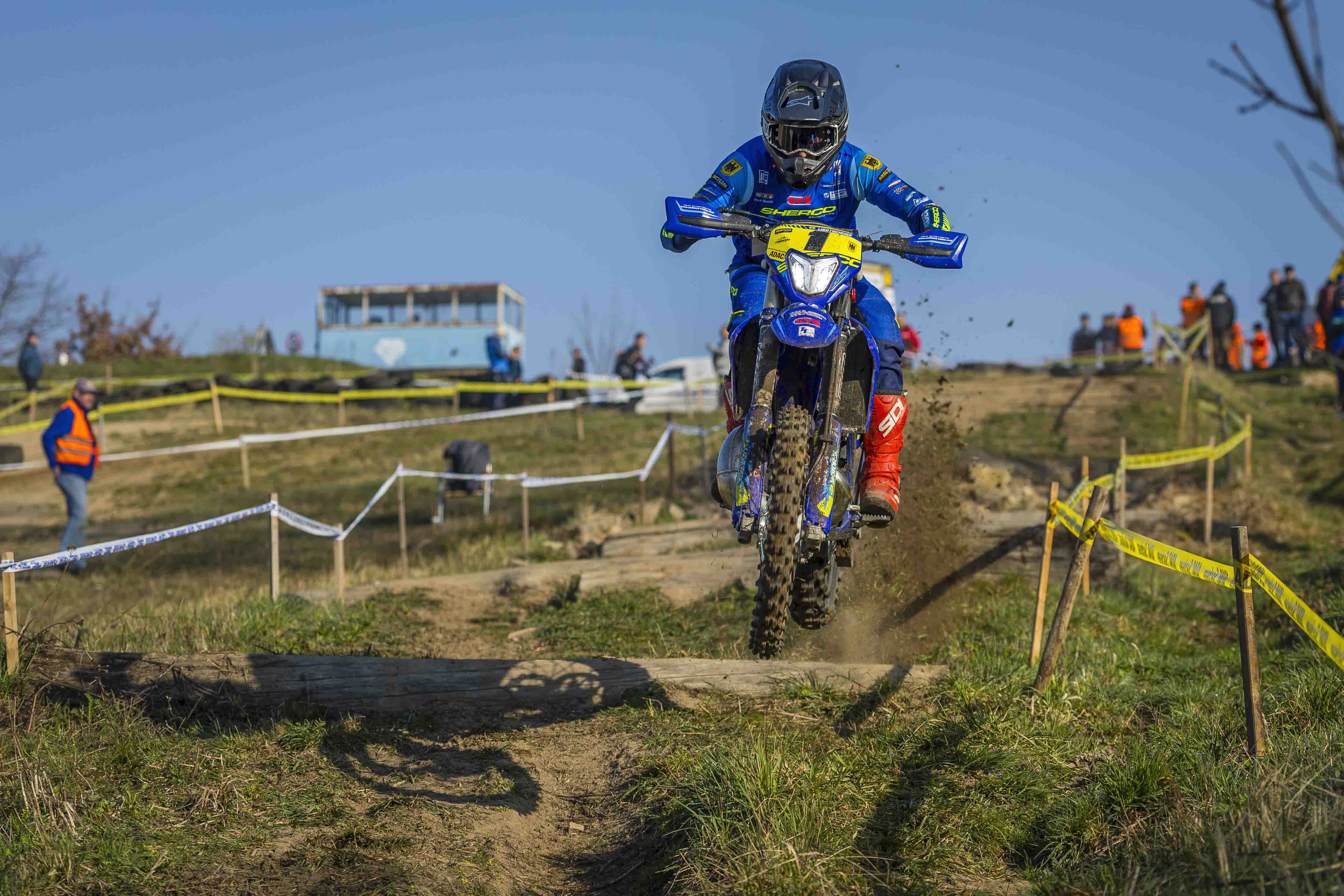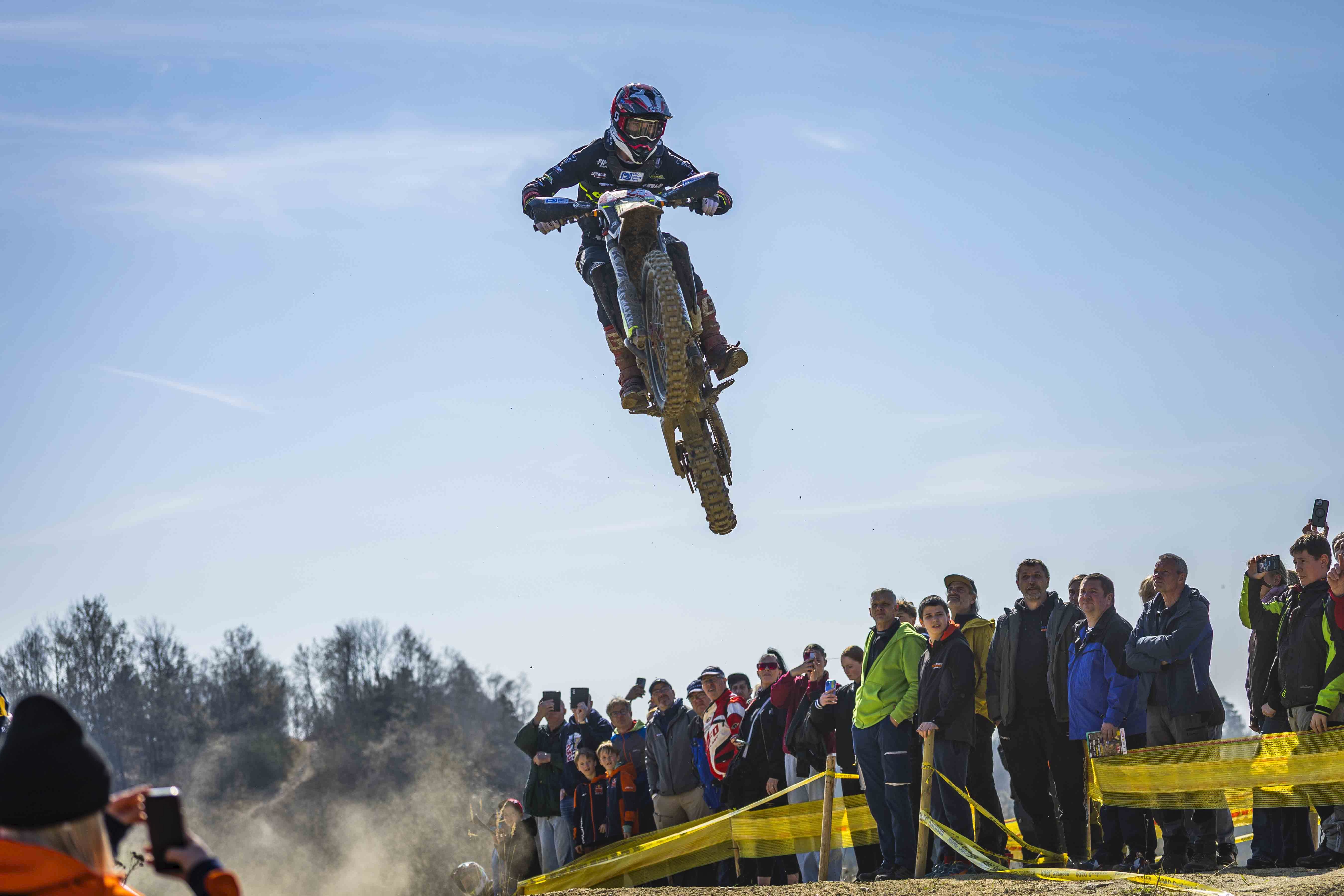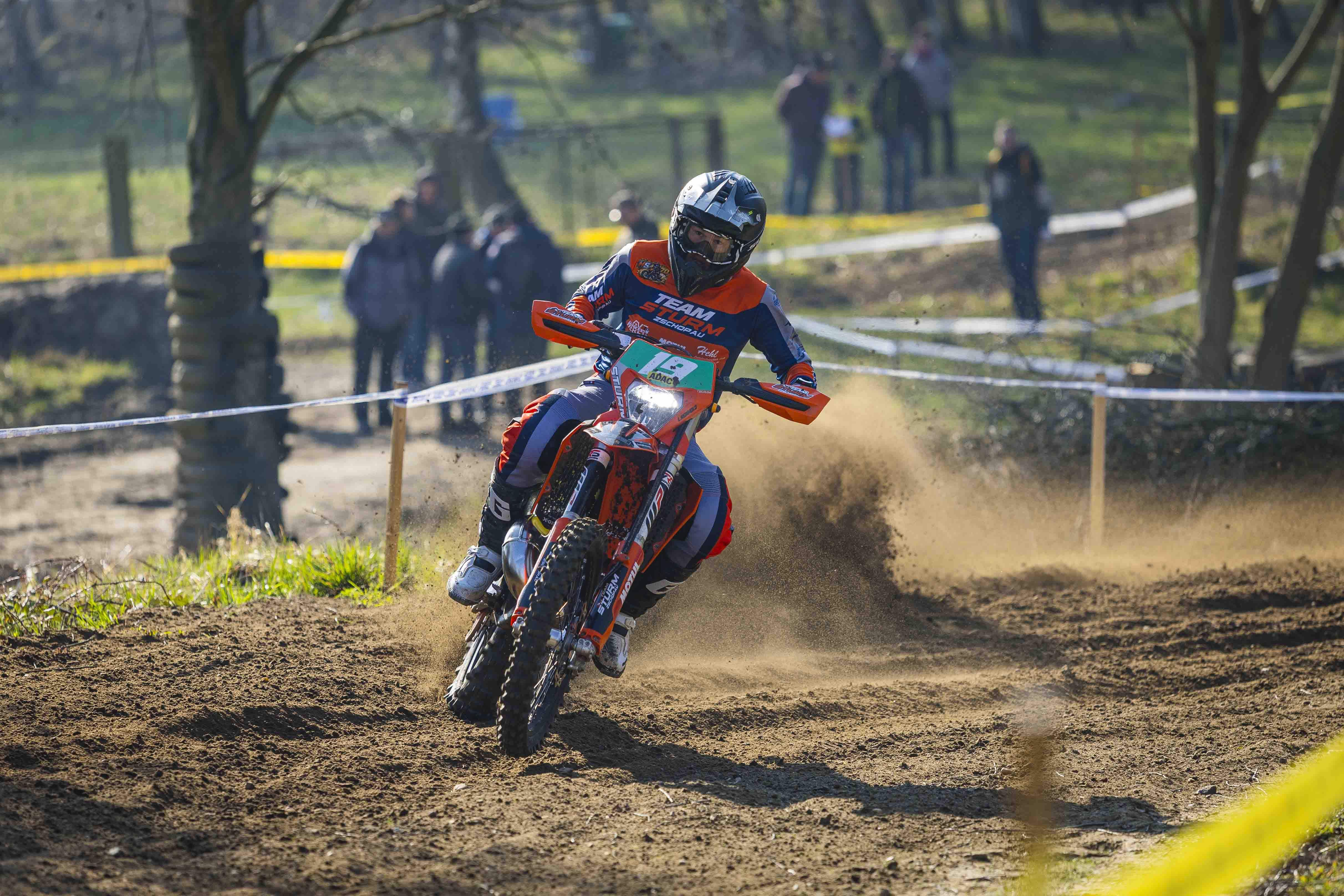 Im Mittelpunkt des Interesses stand Titelverteidiger Luca Fischeder. Der Lokalmatador, zurück auf einer Sherco, wollte vor heimischem Publikum direkt ein Zeichen setzen – und genau das gelang ihm eindrucksvoll.