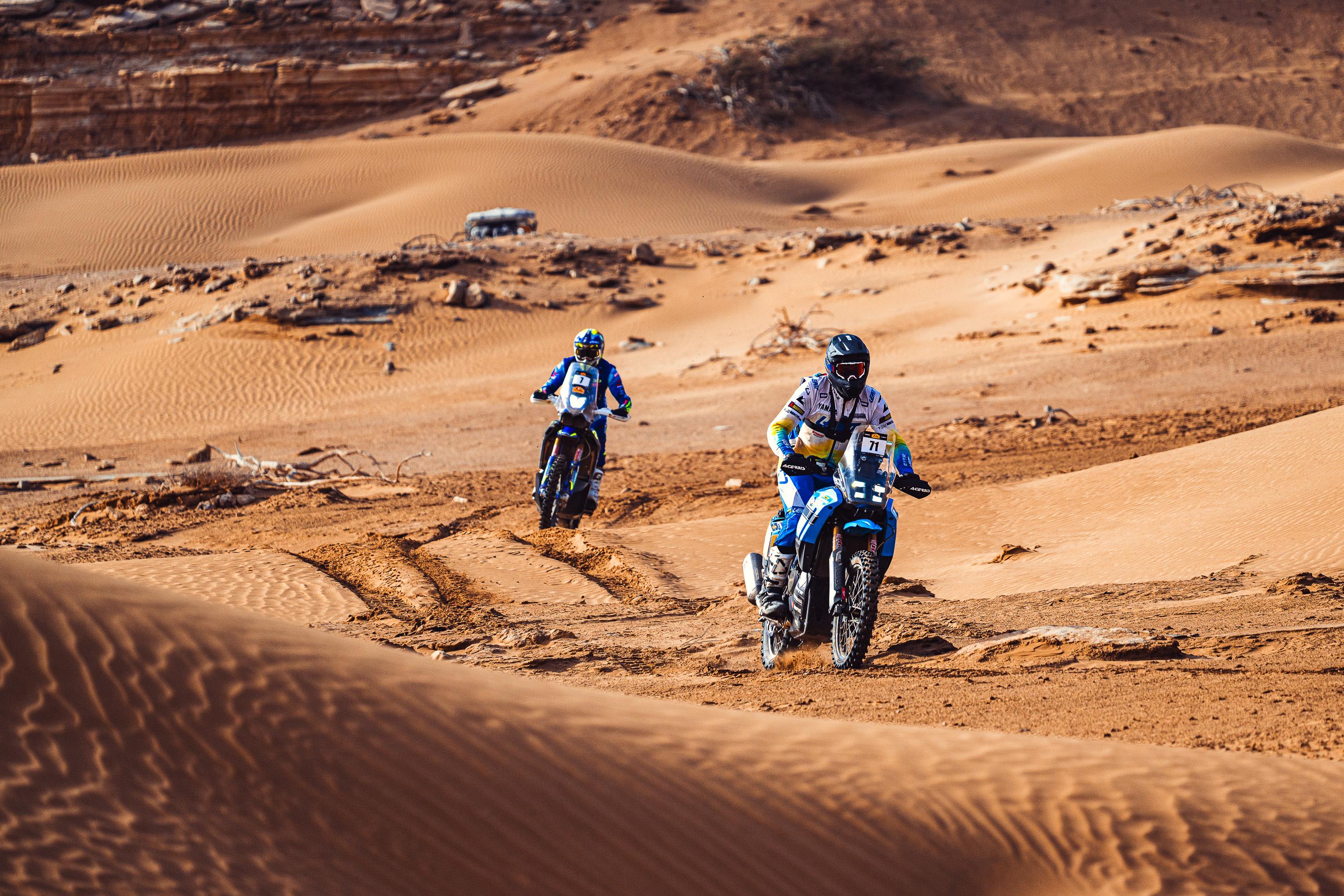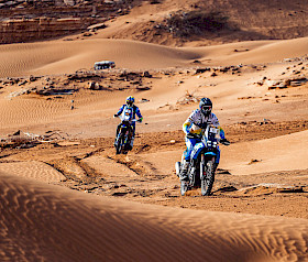 Das Ténéré Yamaha Rally Team, in Partnerschaft mit Riders for Health (unterstützt von Two Wheels for Life), feierte bei der Carta Rallye 2026 in Marokko den dritten Etappensieg in Folge.