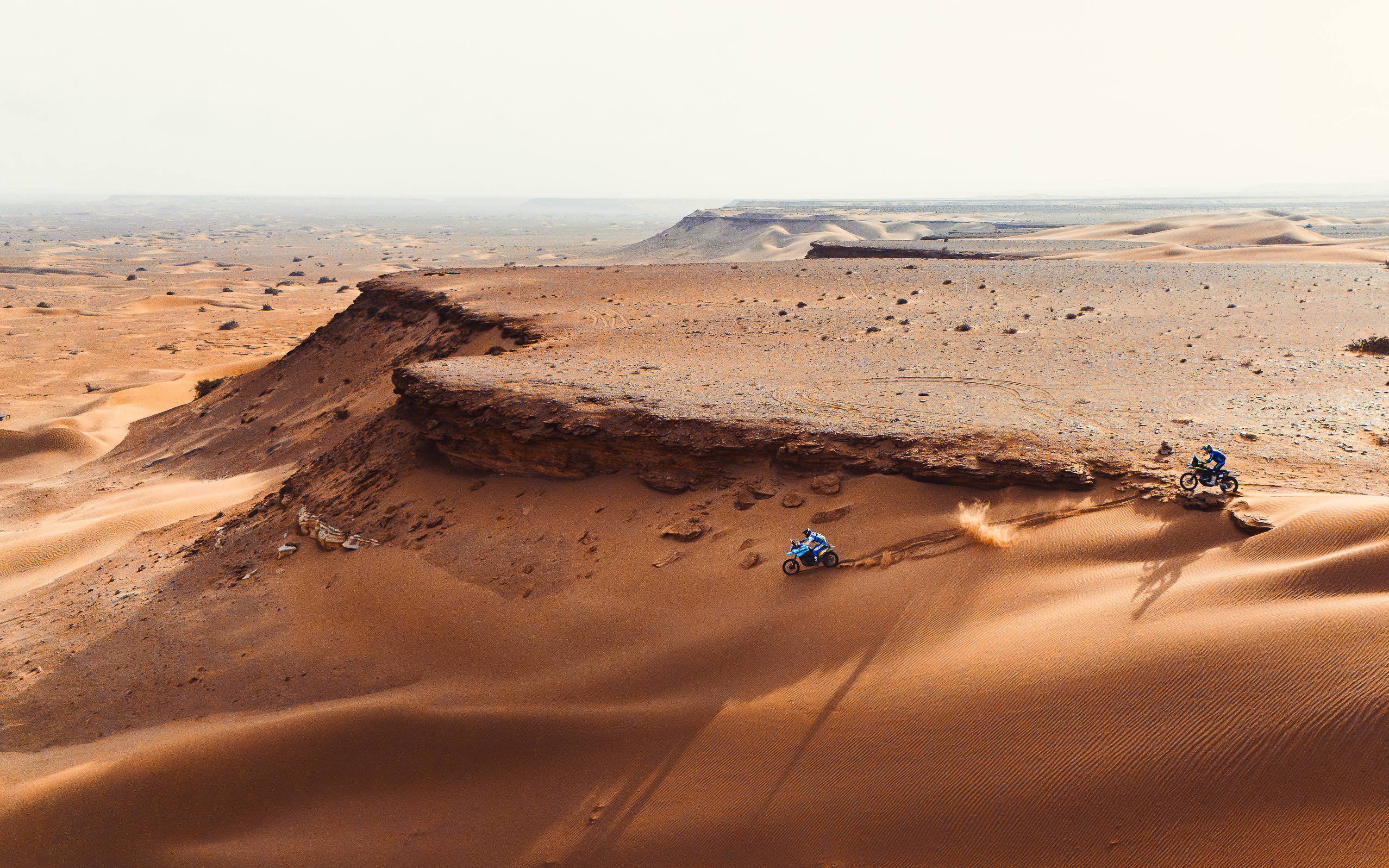 Kevin Gallas: „Die Etappe zu eröffnen war nicht einfach, aber es war eine sehr gute Erfahrung und ein weiterer wichtiger Schritt für mich in der Wüste, da ich mit jedem Kilometer dazulerne. Das Roadbook-Tablet funktionierte einwandfrei, wodurch ich pushen konnte. Ich war mit meinem Tempo zufrieden. Das Motorrad lief super und der erneute Podiumsplatz ist ein starkes Ergebnis. Wir lernen und entwickeln uns Tag für Tag weiter.“