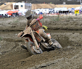 Johnny Girroir vom FMF KTM Factory Racing Team fuhr beim verregneten ...