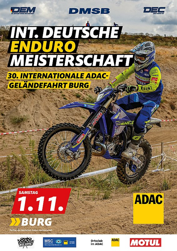 Im Anschluss an das Finale in Burg sind alle herzlich zur Meisterehrung der Deutschen Enduro Meisterschaft (DEM) und des Deutschen Enduro Cups (DEC) eingeladen, um gemeinsam die Saison gebührend ausklingen zu lassen und die Leistungen aller Fahrerinnen und Fahrer zu würdigen.