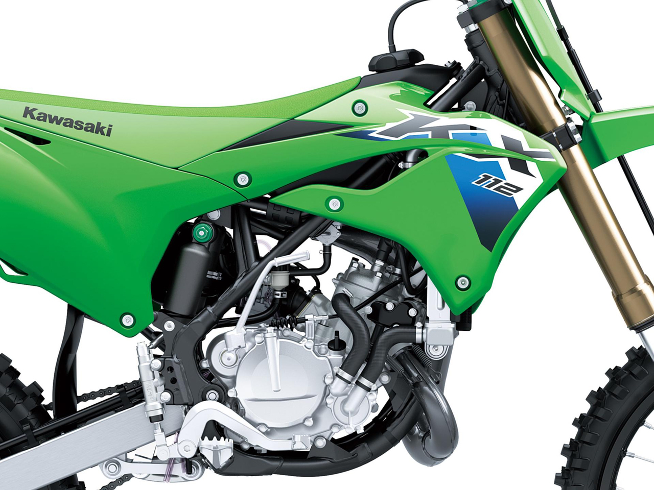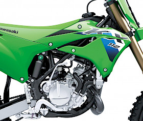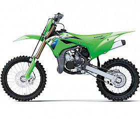 Optisch unterstreichen ein neuer, aggressiv gezeichneter Frontkotflügel, ein kantiges Startnummernschild sowie neu gestaltete Gabelprotektoren den Rennsport-Charakter. ODI Lock-On Griffe auf neuen Renthal Fatbars gehören ebenso zur Serienausstattung wie flachere, von 40 auf 48 mm verbreiterte Fußrasten mit mehr Zähnen für besseren Halt. Schwarze Felgen und grün eloxierte Fahrwerksversteller runden den kompromisslosen „Factory Racer“-Look ab und bringen die Nachwuchsmodelle optisch auf eine Linie mit ihren großen KX-Geschwistern.