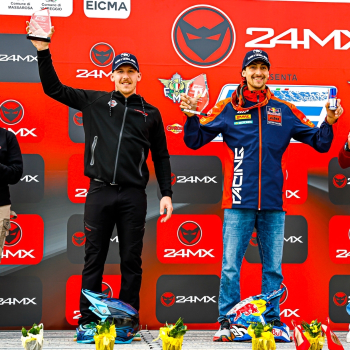 Pavoni stand in der 450er-Klasse ebenfalls zweimal auf dem Podium: Der Fahrer aus Brescia sicherte sich zwei zweite Plätze und fuhr insbesondere beim Cross-Test im tiefen Sand von Viareggio hervorragende Zeiten. Bemerkenswert ist auch sein beeindruckender achter Platz in der Gesamtwertung am Samstag.