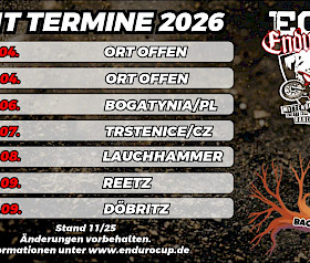 Am 20. und 21. Juni 2026 gastiert der Cup in Bogatynia (Polen) und am 18. und 19. Juli 2026 stoppt ECHT in Trstenice (Tschechien). In Polen starten die Fahrerinnen und Fahrer im 4-Stunden-Endurosprint, in Tschechien treten die 3-Stunden-Cross-Country-Piloten zu ihrer Doppelveranstaltung an.