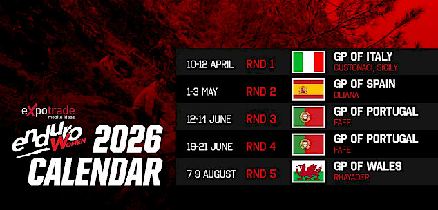 Im Jahr 2026 findet die Expotrade FIM Women's Enduro World Championship im Rahmen von fünf Läufen der Paulo Duarte FIM EnduroGP World Championship statt.