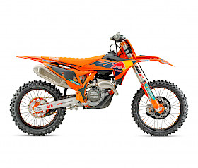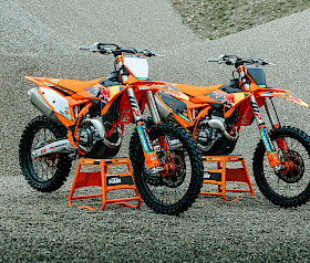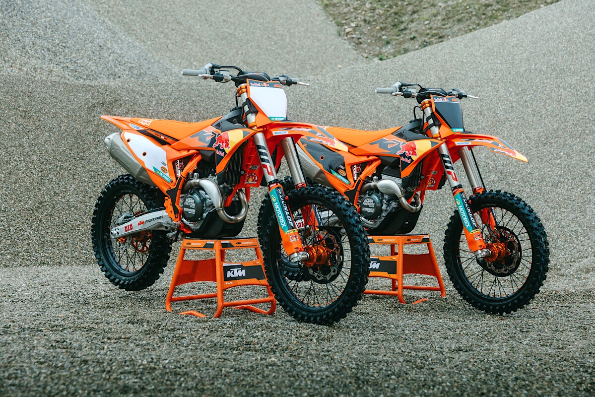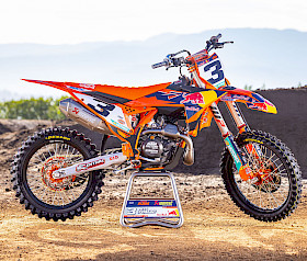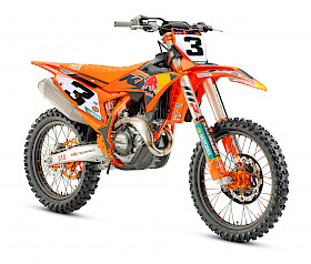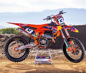 Eine KTM SX-F FACTORY EDITION wäre nicht ohne die neuesten Red Bull KTM Factory Racing Grafiken vollständig erneuert. Wähle die Startnummern von Tomac oder Plessinger und genieße den Anblick – die 2026er Modelle wirken an jedem Startgatter wie der absolute Sieger.