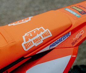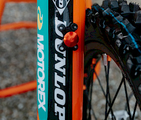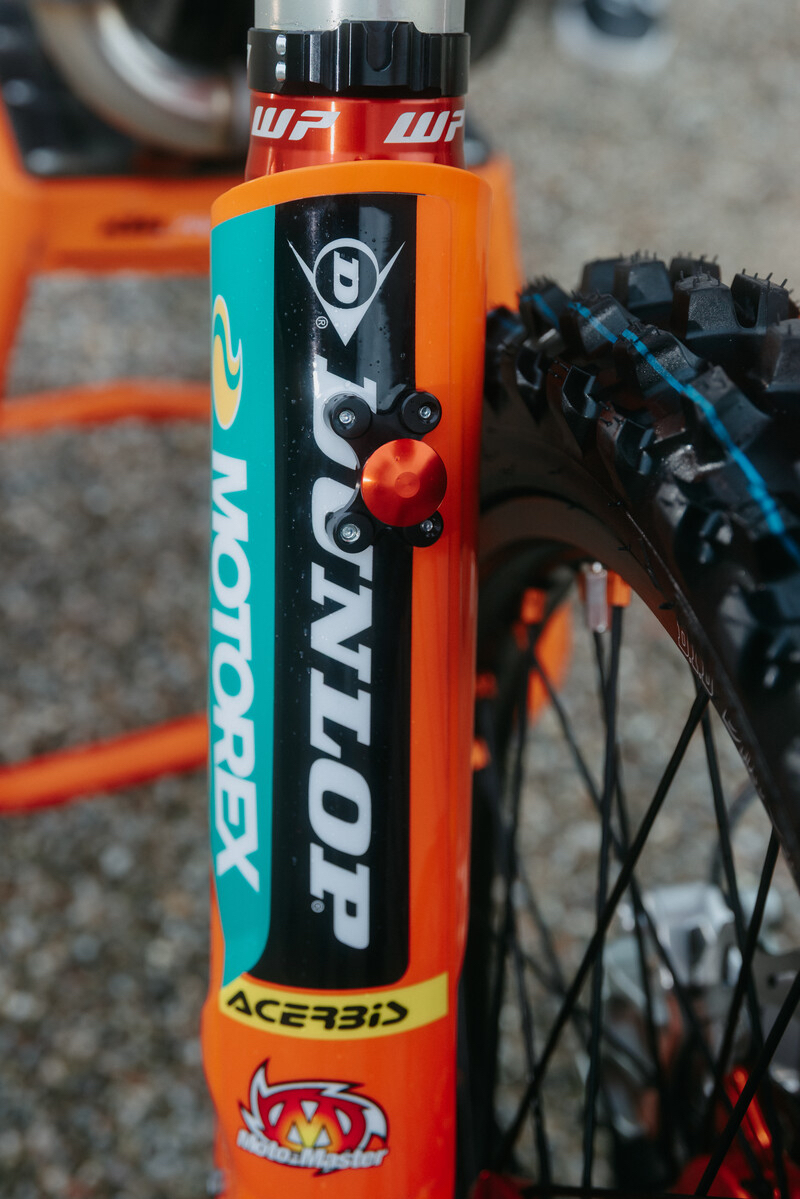 - Factory-Radsatz (schwarze DID DirtStar Felgen, schwarze Speichen, orange Naben und Nippel)