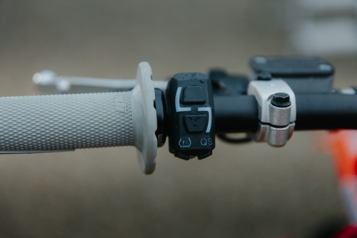 Rennsporttypische Details wie CNC-gefräste Gabelbrücken, hydraulische Brembo-Kupplung und Brembo-Bremsen, ODI Lock-On Griffen, breite Fußrasten, Quickshifter, Launch Control und Traktionskontrolle.