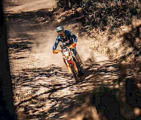 Vor der zweiten, 66km langen Etappe, hatten wir eine kurze Neutralisationszone im Bivouac. Wir hatten Zeit, um schnell zu tanken und einen Riegel zu essen, bevor es weiter ging. Die Etappe führte uns über weitläufige und schnelle Hügel und ich fühlte mich nach meinem kleinen Schreckensmoment am Mittag, wieder richtig wohl. Mein absolutes Highlight war ein Stück, welches uns durch ein breites ausgetrocknetes Flussbett führte. Hier kam die 450er richtig auf ihre Kosten und mit Gewicht über dem Hinterrad wühlte ich mich im fünften Gang durch das lose Geröll. Tag 6 auf Platz 19 sicher beendet!