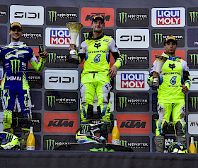 Herlings holte auf Gajser auf und der Slowene schien ernsthaft in Gefahr zu sein. Doch zwei Runden vor Schluss setzte sich die Rossi-Replika deutlich ab und gewann schließlich mit gut vier Sekunden Vorsprung. Seine zahlreichen Fans feierten ausgelassen am heimischen Hang! Neben dem Ende der Durststrecke für „Tiga“ selbst war es auch der erste Rennsieg für Yamaha seit Benistants MX2-Sieg im letzten Jahr und der erste in der MXGP seit Renaux in Argentinien vor 13 Monaten.
