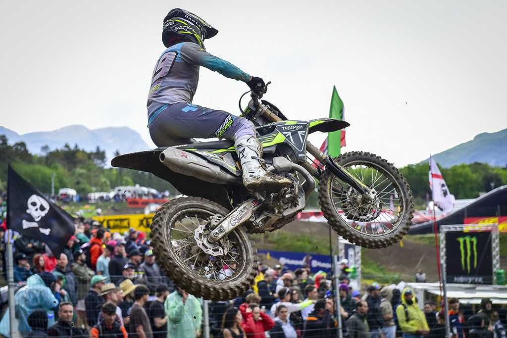 Triumph Racing Factory Team -Fahrer Guillem Farres belegte den zweiten Platz in der Gesamtwertung vor dem französischen Star Mathis Valin vom Kawasaki Racing Team MX2.