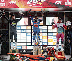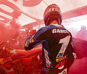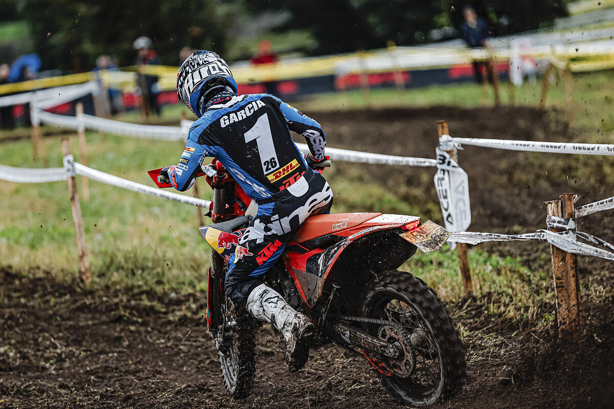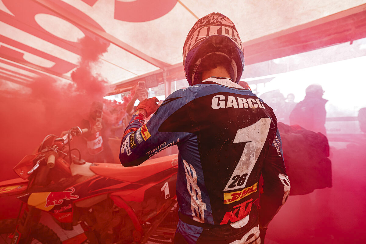 Anhaltender Regen und herausforderndes Gelände brachten in Italien jeden Fahrer an seine Grenzen, doch Garcia stellte sich der Herausforderung, als es am wichtigsten war. Er eröffnete das Wochenende mit einem zweiten Platz im Supertest am Freitag und raste dann am Samstag durch die rutschige, steinige Strecke, um die E1-Kategorie zu dominieren. Mit der schnellsten Zeit in 11 von 12 Tests stürmte Garcia mit einem Vorsprung von über einer Minute und 50 Sekunden zum Klassensieg und holte sich gleichzeitig den EnduroGP-Gesamtsieg.