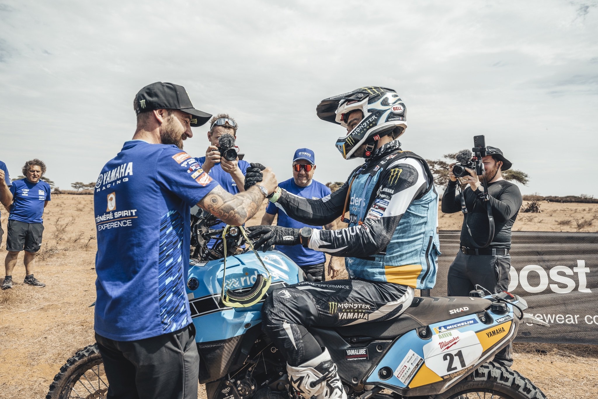 „Ehrlich gesagt, mir fehlen die Worte. Ich kann es noch gar nicht richtig fassen, aber wow, wir haben es geschafft! Ich kann es immer noch nicht glauben, dass ich die AER gleich beim ersten Versuch gewonnen habe; es ist einfach unglaublich. Das war erst meine dritte Rallye-Raid, deshalb fühlt es sich so gut an. Der Kampf mit Gautier war fantastisch. Was für eine Legende! Ich kann es immer noch nicht glauben, dass ich gegen ihn so angetreten bin. Ehrlich gesagt hatte ich keine Ahnung, wie das Ergebnis aussehen würde. Ich habe einfach mit meiner verletzten Hand alles gegeben,um dieses Ergebnis für das Team und Yamaha zu sichern, ist einfach großartig. Ich möchte mich bei allen bedanken, die an diesem Projekt beteiligt waren. Das Motorrad war fantastisch und die Unterstützung des Teams und aller bei Yamaha war unglaublich. Ich denke, wenn wir Lac Rose erreichen, wird es mir erst richtig bewusst werden und dann werden die Emotionen mich überwältigen. Bis dahin werde ich einfach versuchen, den Moment zu genießen.“