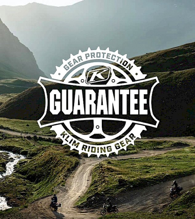 Die Mission von Klim ist es, Fahrer zu schützen, damit diese selbstbewusst ihre Grenzen ausloten können. Seid ihr in einem Motorradunfall verwickelt, unterstützt euch KLIM. KLIM repariert oder ersetzt die beschädigte Ausrüstung. KLIM steht mit seiner einzigartigen GEAR PROTECTION GUARANTEE dafür ein, dass ihr bis zu 100% der zerstörten KLIM-Bekleidung kostenlos ersetzt bekommt.
