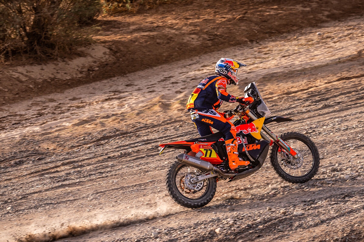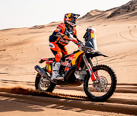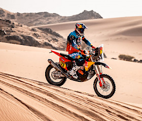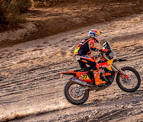 Sanders hat auf der siebten Etappe der Dakar einmal mehr sein Können, seine Schnelligkeit und seine Ruhe bewiesen. Nach einem frühen Fehler fing sich der Australier wieder, konzentrierte sich und begann, die beiden Fahrer vor ihm einzuholen. Daniel holte seine Rivalen nicht nur ein, sondern baute auch einen so großen Vorsprung aus, dass er sich ab Kilometer 375 die Bonuszeit sichern konnte. Diese makellose Leistung brachte ihm den vierten Platz auf der Etappe ein und vergrößerte seinen Vorsprung in der Gesamtwertung auf vier Minuten und 25 Sekunden.