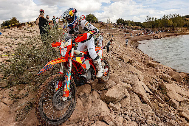 Der Qualifying-Prolog am Samstag bestand aus einer freien Trainingsrunde, gefolgt von zwei Einzelzeitläufen auf einem engen und technisch anspruchsvollen Kurs durch felsiges Gelände, nahe der Stadt Aguilar de Campoo. Lettenbichler brauchte Zeit, um das perfekte Setup seiner KTM 300 EXC zu finden und zeigte eine starke, aber kalkulierte Leistung, die ihm vor dem Hauptrennen eine Top-3-Startzeit sicherte.