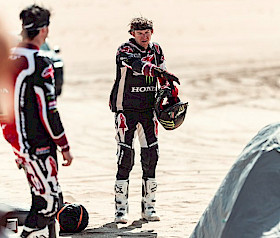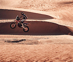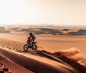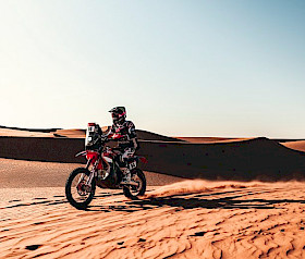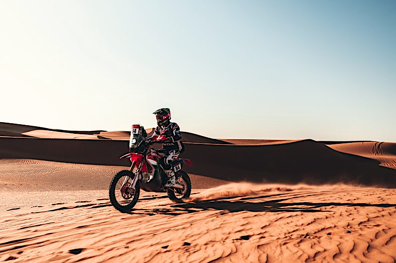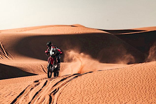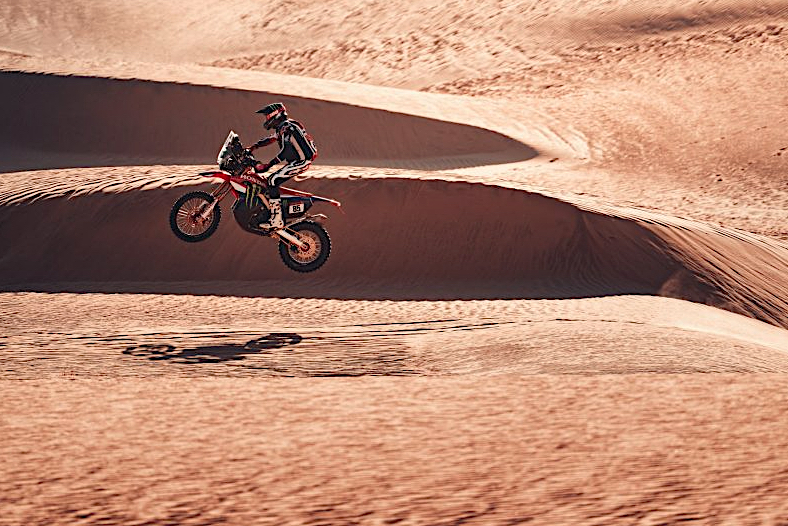 Die neunte Etappe bot den Fahrern des Monster Energy Honda HRC-Teams eine anspruchsvolle Mischung aus Terrain, mit schnellen Canyon-Strecken, Off-Piste-Abschnitten und scheinbar endlosen Dünen. Die 418 km lange Wertungsprüfung von Wadi ad-Dawasir zum Marathon-Camp barg zusätzliche Gefahren, darunter Tiere, die ständige Aufmerksamkeit erforderten.
