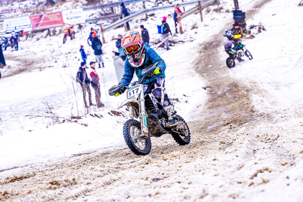 Die Runde verlangte den Fahrern alles ab. Bereits im ersten Lauf wechselten die Bedingungen mehrfach: Schneebedeckte Abschnitte zu Beginn, gefährliche Eisplatten im weiteren Verlauf und schließlich schlammige Passagen im dritten Lauf am Nachmittag, als leichter Regen einsetzte. Trotz dieser ständigen Veränderungen blieb die Strecke jederzeit fahrbar. Die verbliebenen Schneeflächen sorgten zudem für eine eindrucksvolle Kulisse und echtes Winterenduro-Feeling, das bei vielen Teilnehmern und Zuschauern für Begeisterung sorgte.