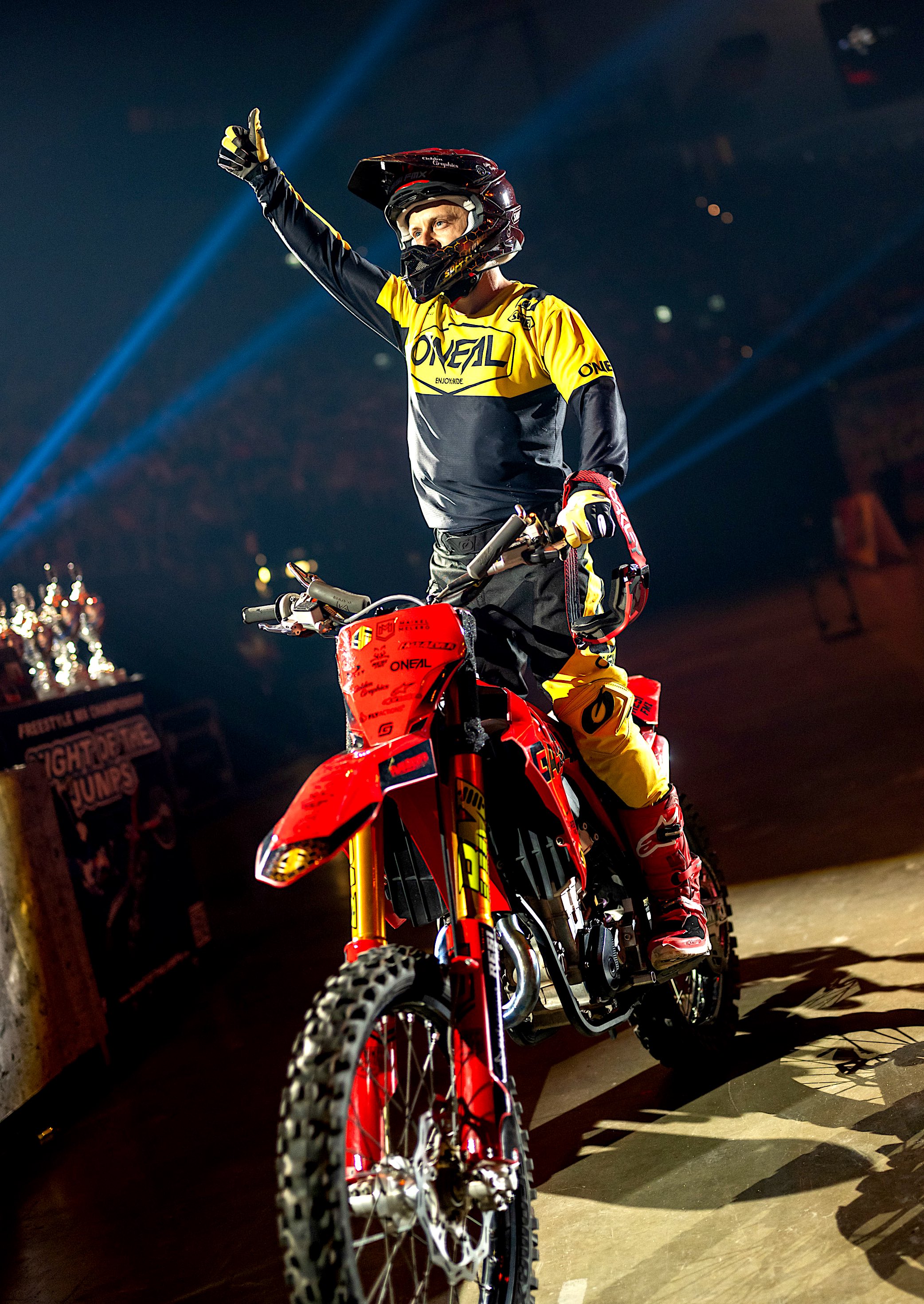 Jetzt stehen die Sportler für das große Finale mit dem Deutschland Grand Prix in Düsseldorf fest. Allen voran natürlich der amtierende Weltmeister, X Games Gold Gewinner und NIGHT of the JUMPs Tour Champion Luc Ackermann aus Deutschland, der mit seinen Double Backflips, 360s oder Tsunami Flips aktuell das Maß aller Dinge ist. Er kann die NIGHT of the JUMPs World World Championship in Düsseldorf zum vierten Mal gewinnen.