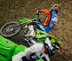 Nach seinem vierten Platz im ersten Heat sprang er zwei Mal als Erster über den Zielhügel und sicherte sich so beim Saison-Showdown seinen ersten Tagessieg in einem deutschen SX-Tempel. Natürlich war er davon hellauf begeistert und sagte anschließend: „Es ist natürlich ein Traum, bei meinem ersten Gastspiel in Deutschland noch einen Tagessieg zu holen. Ich konnte mich von Tag zu Tag besser auf die Bedingungen hier einstellen und hoffe nun, im nächsten Winter wiederzukommen und noch den einen Schritt nach ganz oben machen zu können.“