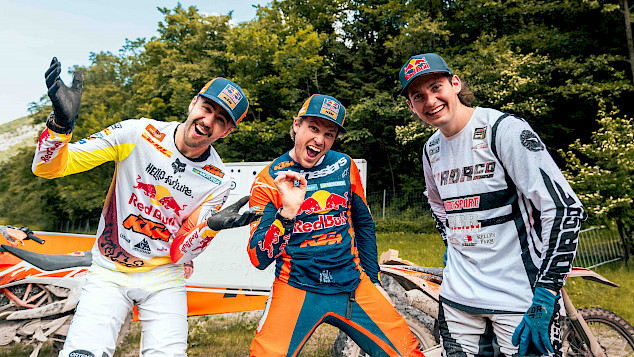 Mani Lettenbichler, Daniel „Chucky“ Sanders und Carson Brown lieferten sich ein packendes Rennen gegen die Uhr und wechselten dabei zwischen vier Maschinen aus vier verschiedenen Segmenten, um zu beweisen, wer den ultimativen READY TO RACE-Vorteil hat.
