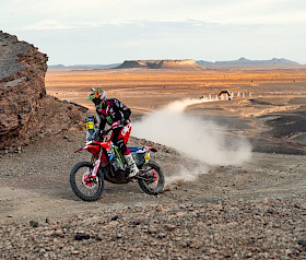 Schareina, der an der Spitze der Gesamtwertung stand, hatte nur noch 216 Kilometer vor seinem ersten Sieg bei der Rallye du Maroc, als er und seine Teamkollegen von Monster Energy Honda HRC sich für die fünfte und letzte Etappe der diesjährigen Veranstaltung aufstellten.