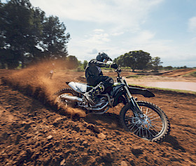 Die KYB-Einstellungen wurden von der RC-Edition übernommen und verbessern die Kontrolle im mittleren Hubbereich, die Fahrwerksbalance und die Kurvenstabilität. Das Premium-KYB-Setup wurde durch Rennerfahrungen optimiert, um eine Leistung auf Profiniveau zu liefern und ist optimal auf harte Schläge und technische Rhythmusabschnitte abgestimmt. Die 48-mm-KYB-AOS-Schraubenfedergabel und der dreifach verstellbare Piggyback-Stoßdämpfer sind auf gleichmäßige Dämpfung, kontrollierte Landungen und ein verbessertes Fahrgefühl in unterschiedlichstem Gelände abgestimmt.
