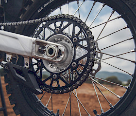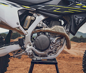 Die Triumph TF 450-X ist mit Premium-Komponenten ausgestattet und verfügt über Neken-Gabelbrücken, ProTaper ACF-Lenker mit Carbonkern und ODI-Lock-On-Griffe, die ein auf Kontrolle und Komfort ausgelegtes Cockpit vervollständigen. Der Endantrieb verfügt über eine DID 520 SDH-Kette und JT-Leichtbau-Ritzel, die zur weiteren Gewichtsoptimierung mitentwickelt wurden. Darüber hinaus sind weitere Premium-Parts, als Zubehör erhältlich, um die Triumph TF 450-X für jeden Einsatzbereich, gemäß persönlicher und individueller Vorlieben, zu optimieren.