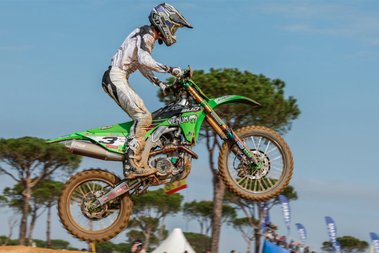 Francisco Garcia vom Venum Bud Racing Kawasaki-Team legte einen perfekten Start in die EMX250-Europameisterschaft hin und sicherte sich mit einem Doppelsieg (1-1) am Wochenende in Almonte (Andalusien) die rote Startnummer. Teamkollege Jake Cannon komplettierte den Doppelsieg für Bud Kawasaki, wodurch Kawasaki sich in der Herstellerwertung sofort einen Vorsprung von zwölf Punkten herausfuhr.