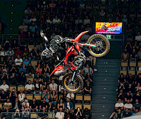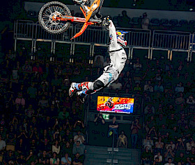Er begann mit dem Double Backflip, gefolgt von Tsunami Flip, No Hand Frontflip, 360, Seatgrab Indy Flip, Holygrab, Clicker to Ruler Flip, Flatliner und einem weiteren Double Backflip 1 Hand und sicherte sich mit 86,5 Punkten den Tagessieg in München. Das Comeback des FMX „Terminators“ war damit perfekt.