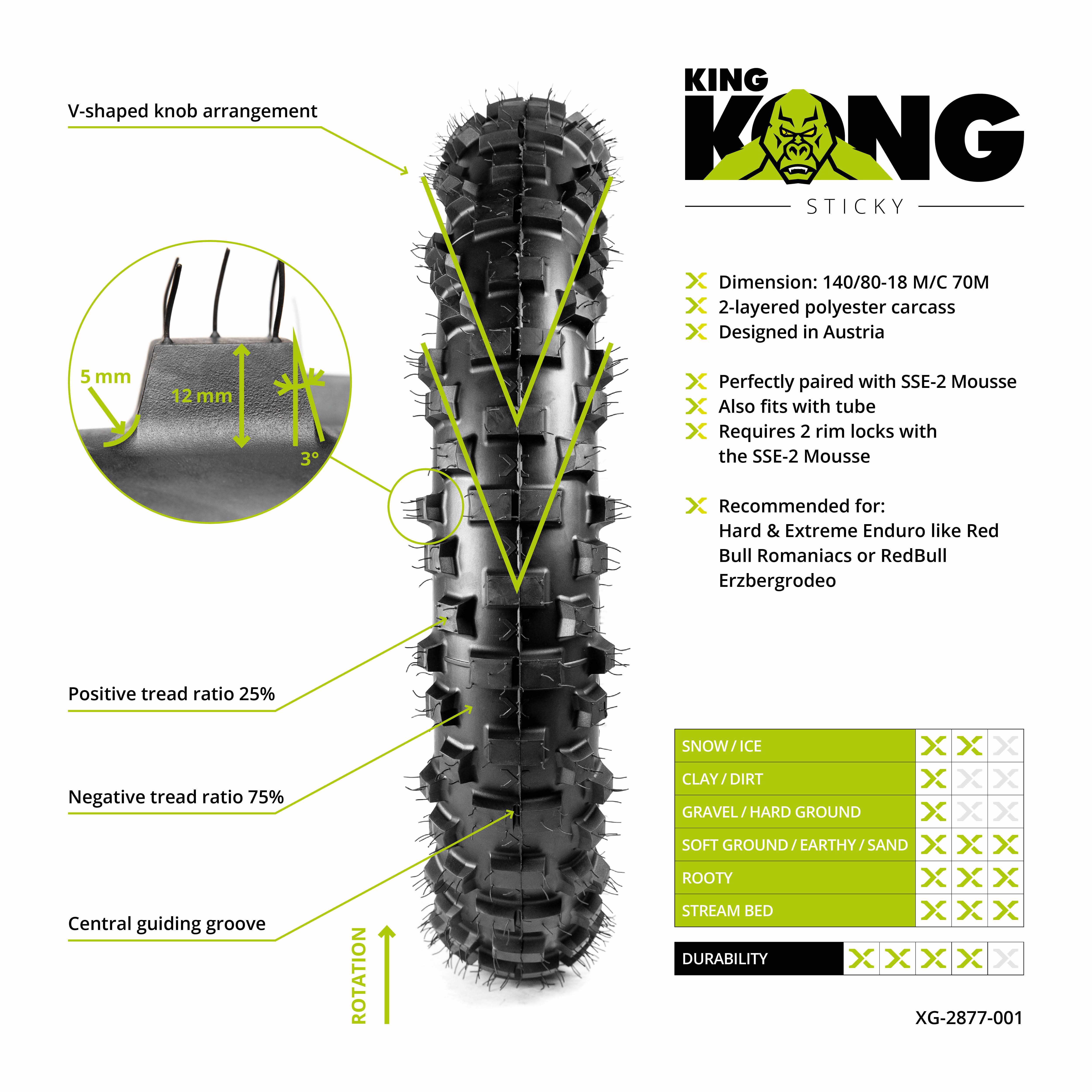 X-GRIP KING KONG STICKY 140/80-18 - entwickelt im Rennsport, gebaut für Wurzeln, Steine und alles, was Hard Enduristen lieben: das Extreme.