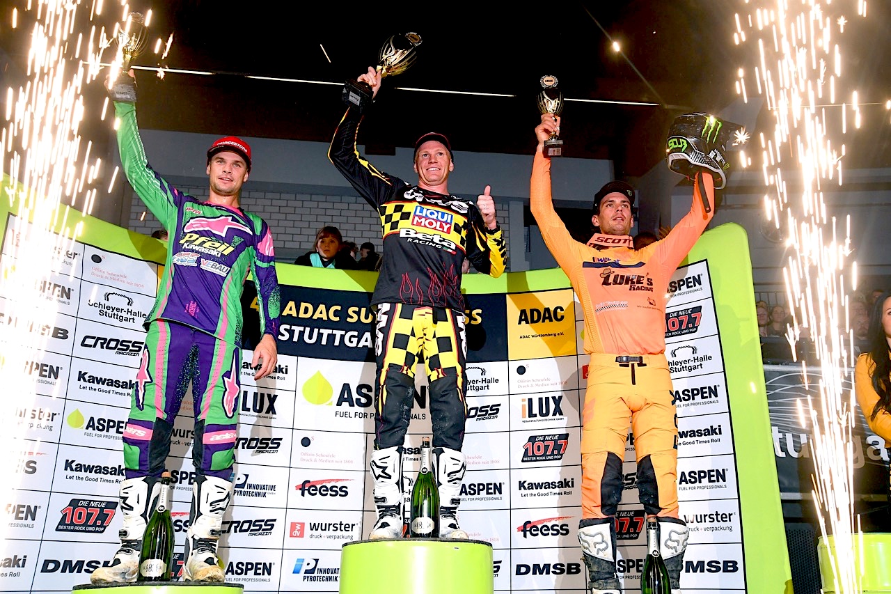 So sagte der einst selbst aktive und im DDR-Motocross sehr erfolgreiche Harald Pfeil: „Wir sind mit dem Wochenende sehr zufrieden, zumindest mit den Ergebnissen in der SX1. Wie Luke Clout, trotz der für ihn neuen Gegebenheiten – zum ersten Mal in Deutschland und ein neues Motorrad – gleich so gut eingeschlagen hat, konnte sich absolut sehen lassen und lässt für Dortmund hoffen. Schade, dass er so knapp am Königstitel vorbeigeschrammt ist. Aber dafür, dass er das erste Mal hier war, hat sich das wie ein kleiner Sieg angefühlt. Die SX2 ist ausbaufähig, würde ich sagen.“